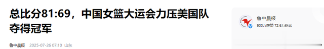 鲁中晨报——总比分81:69,中国女篮大运会力压美国队夺得冠军