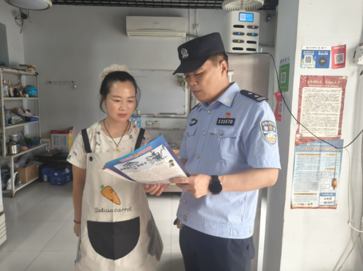 行动中,联合检查组重点对小超市、餐饮店、旅馆等人员密集场所的消防设施配备、安全通道畅通、电气线路敷设等情况进行细致排查。针对检查中发现的问题,民警当场提出整改意见,并指导商户落实“三清三关”消防安全要求。同时,民警结合近期高发的刷单返利、冒充客服等电信诈骗案例,通过发放宣传手册、现场讲解等方式,向商户和群众普及防诈知识,强调“不轻信、不转账、不泄露个人信息”的防范原则,并同步开展防火防盗、禁毒等法制宣传。